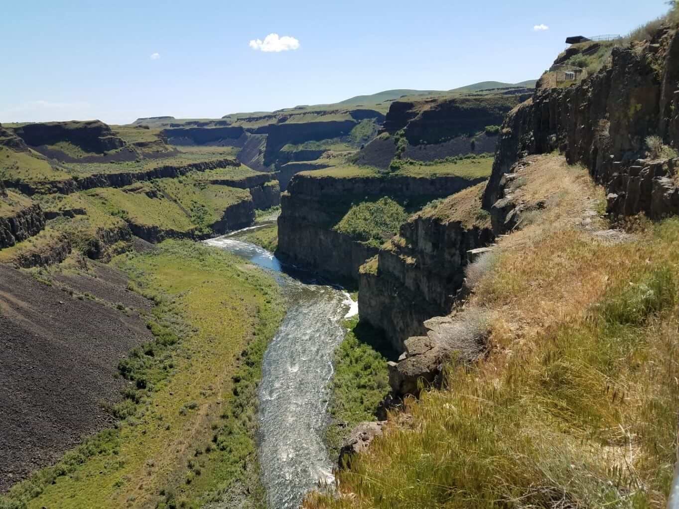 The Palouse River empties into the Snake River. The Palouse River Canyon and the Palouse Falls are not very distant from where this occurs. The Snake, rises in the mountains east of Yellowstone and makes its way north until it, in turn, empties into the Columbia River.