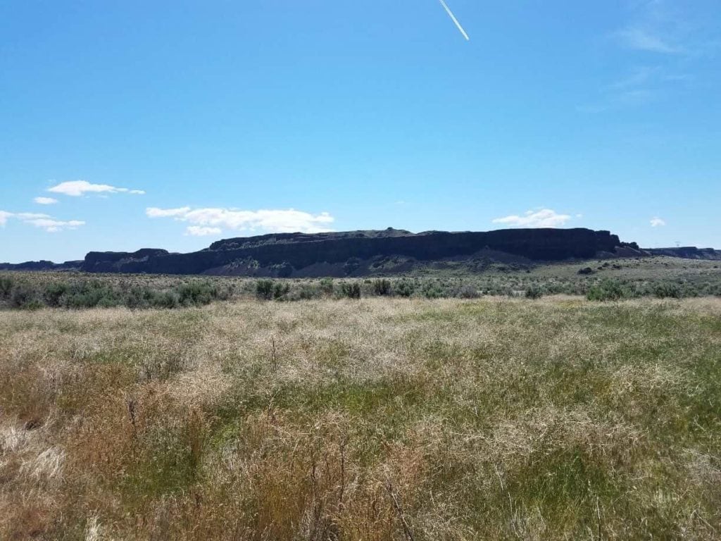 It cannot be discerned from the above picture but there is a deep valley between where I stood to take this picture and the “blade”. The below picture better illustrates the coulee valley. At the point of that photo, I was walking toward the lower flat area of the blade approximately in the center of the photo. It can be readily seen that the elevation to the right of the flat area is higher. What cannot be understood from the photo is the height difference, which as indicated earlier is about 200 feet.